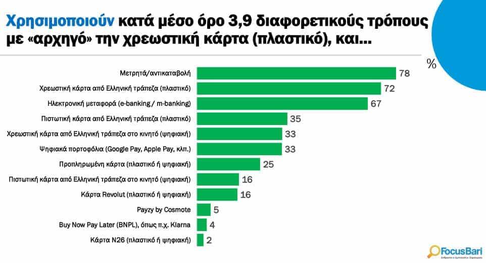 Οι Τρόποι Πληρωμής που Προτιμούν οι Έλληνες. Αποτελέσματα της Πανελλαδικής Έρευνας της εταιρείας FocusBari το Μάιο 2023.