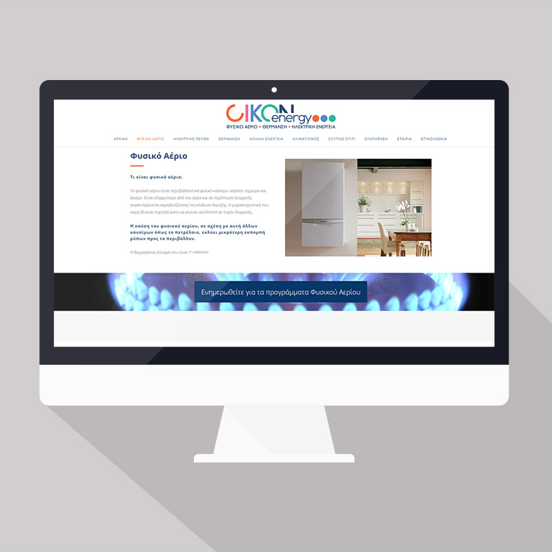 Η Minimal Διαφημιστική ανέλαβε και ολοκλήρωσε την σχεδίαση της ιστοσελίδας της εταιρίας ”OIKON ENERGY” η οποία ειδικεύεται στα συστήματα θέρμανσης, το φυσικό αέριο, συστήματα κλιματισμού, παροχή ηλεκτρικής ενέργειας κ.α..