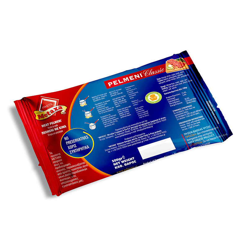 Η Minimal Διαφημιστική ανέλαβε και ολοκλήρωσε την σχεδίαση της συσκευασίας των ζυμαρικών PELMENI της εταιρίας ”PASTA METAXA” η οποία εδρεύει στη Κατερίνη.