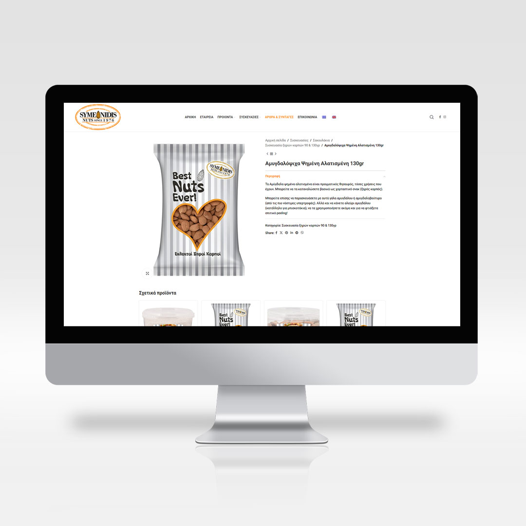 Η Minimal Διαφημιστική ανέλαβε και ολοκλήρωσε τη σχεδίαση του ηλεκτρονικού καταστήματος της εταιρείας ”Συμεωνίδης Nuts” Με εξειδίκευση στους ξηρούς καρπούς, τα αποξηραμένα φρούτα, τα δημητριακά και τα snacks, η εταιρία προσφέρει ποιοτικά προϊόντα μέσα από σύγχρονες εγκαταστάσεις στη Σφενδάμη Πιερίας.